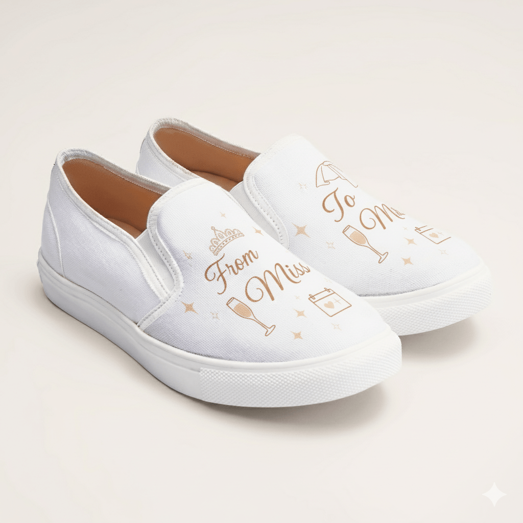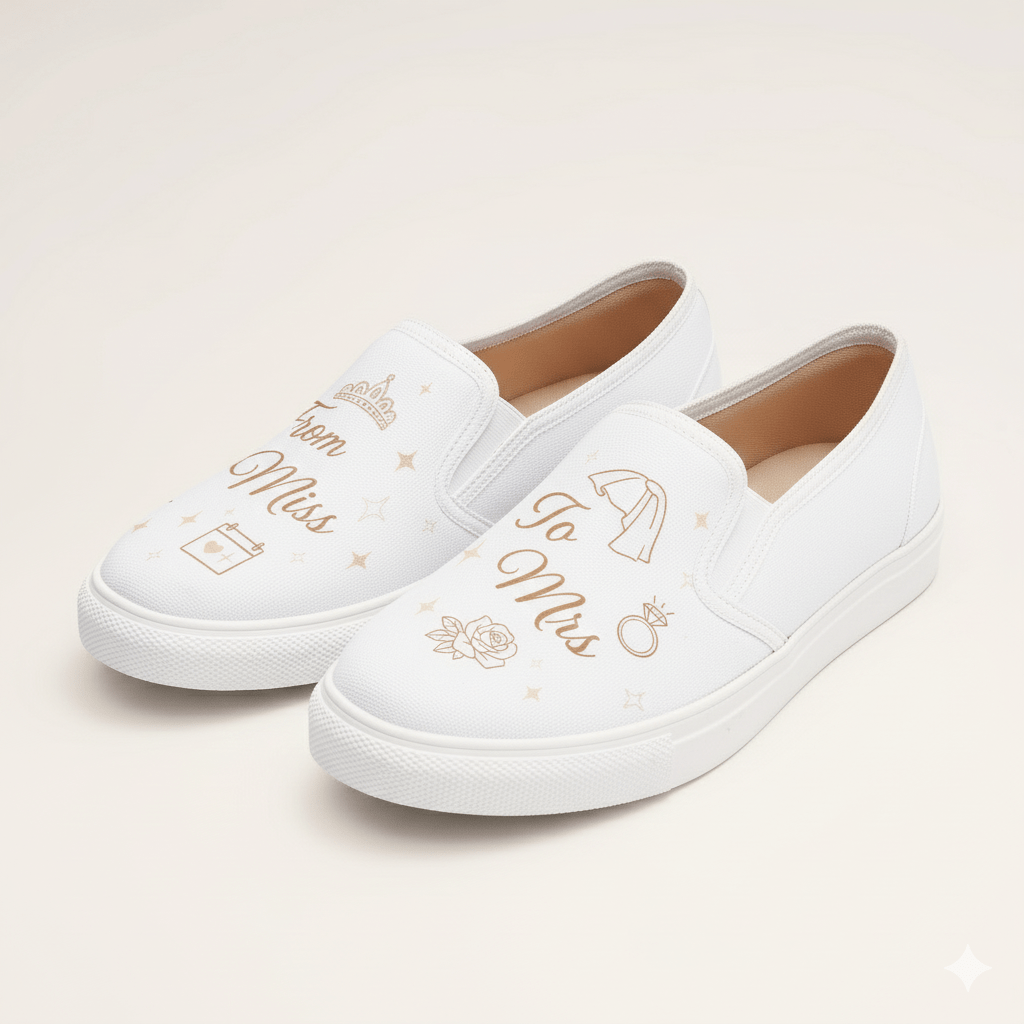Chat with Fit Expert# Miss to Mrs Slipons Slip into comfort and style with these versatile slip-ons that transition seamlessly from casual days to special occasions. Designed for the modern woman who refuses to compromise on ease or elegance, these slippers offer a perfect blend of cozy support and sophisticated flair. Whether you're running errands or celebrating life's milestones, these slip-ons are your go-to companion. Effortless, chic, and unapologetically comfortable—because looking good shouldn't require a struggle.