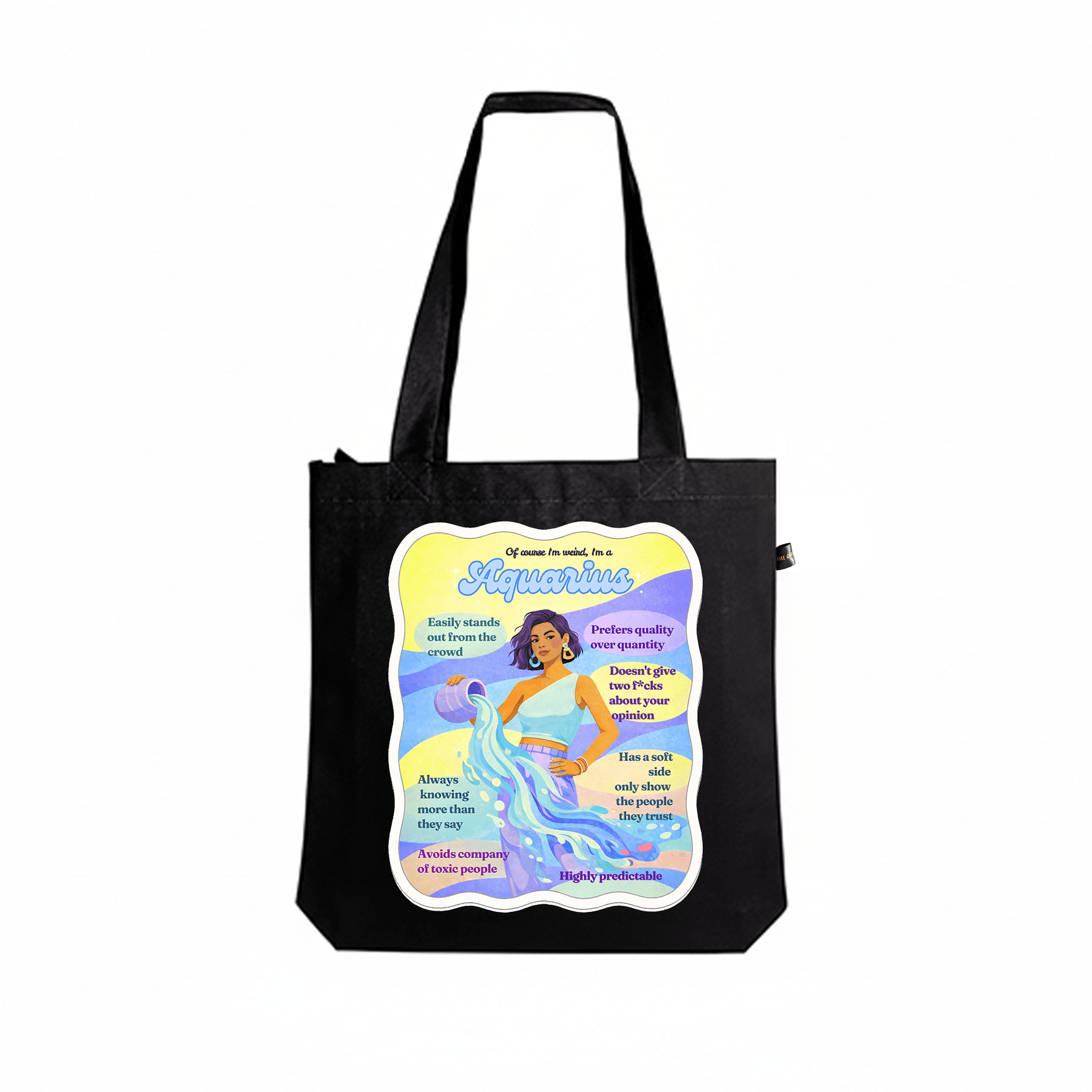 Featuring bold typography inspired by classic Aquarius traits, this tote celebrates everything you are: