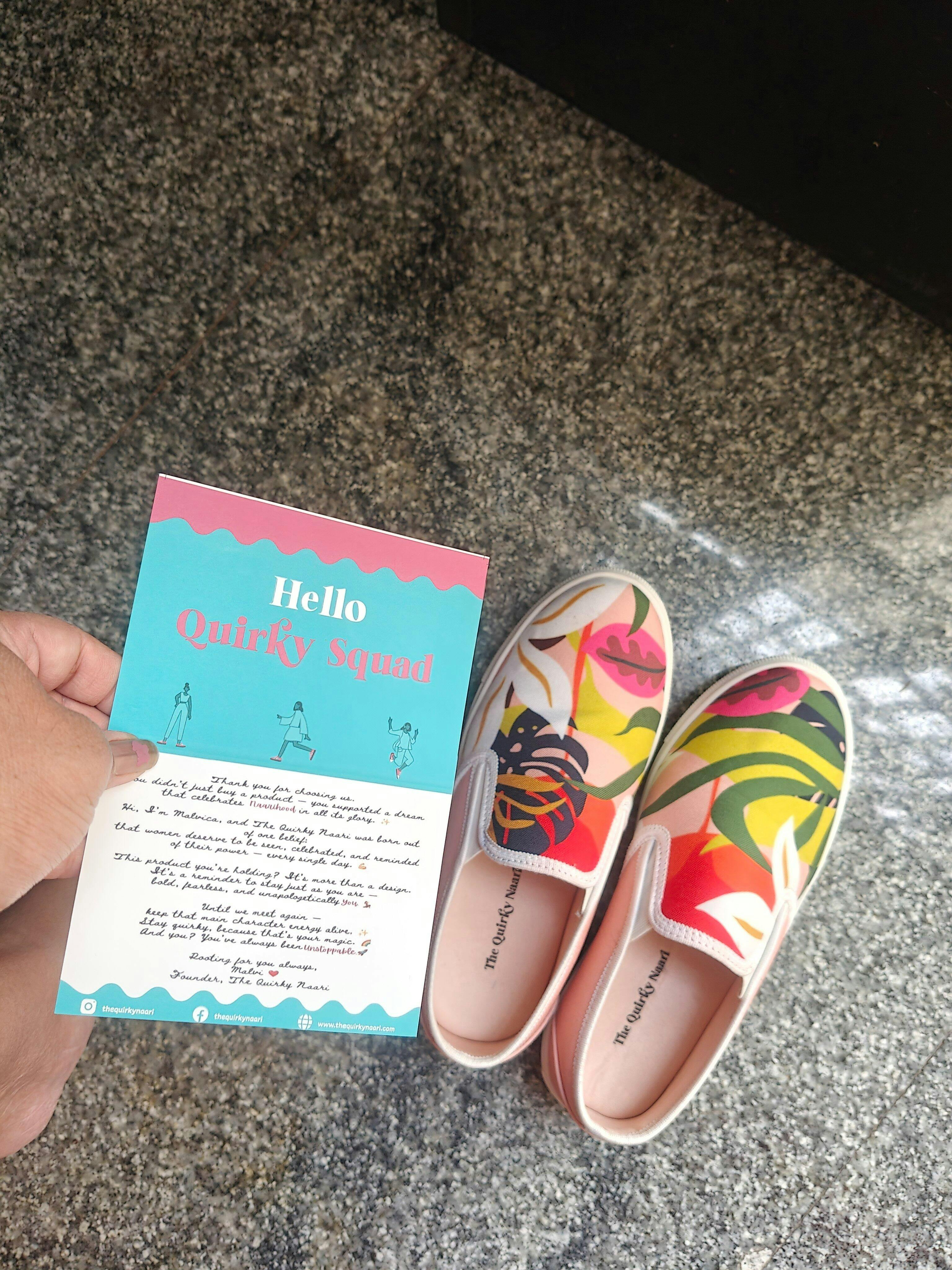 These Abstract Floral Printed Canvas Slip‑Ons are made for the art lovers, the day‑dreamers, and the souls who find magic in the unexpected. With a fresh color palette and lush botanical illustrations, it’s like walking through your own little garden — everywhere you go.