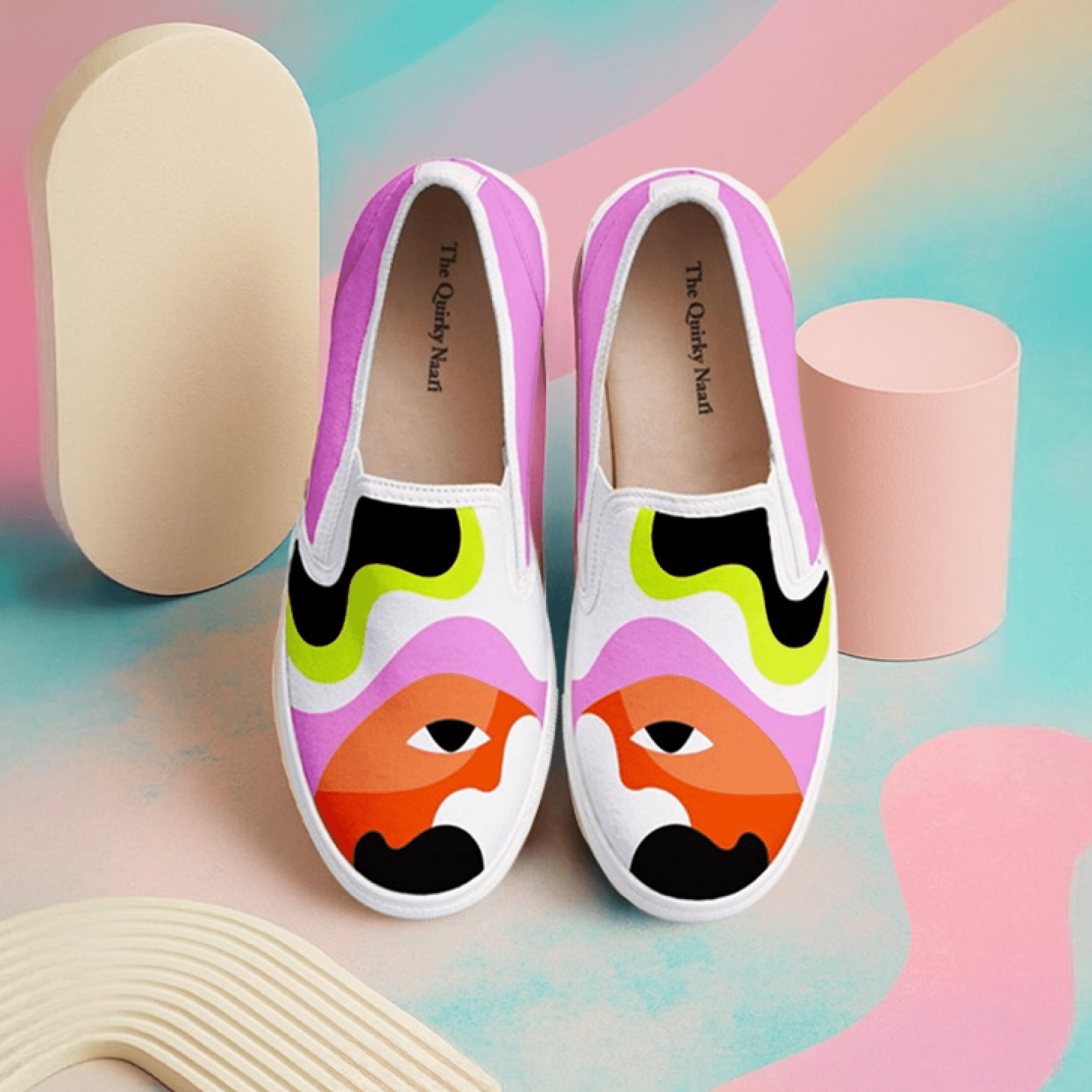 These Eye See You Printed Canvas Slip‑Ons are made for the ones who see fashion as art. Bold strokes, playful shapes, and that mysterious eye detail make this pair a true statement for creative souls who love to stand out.