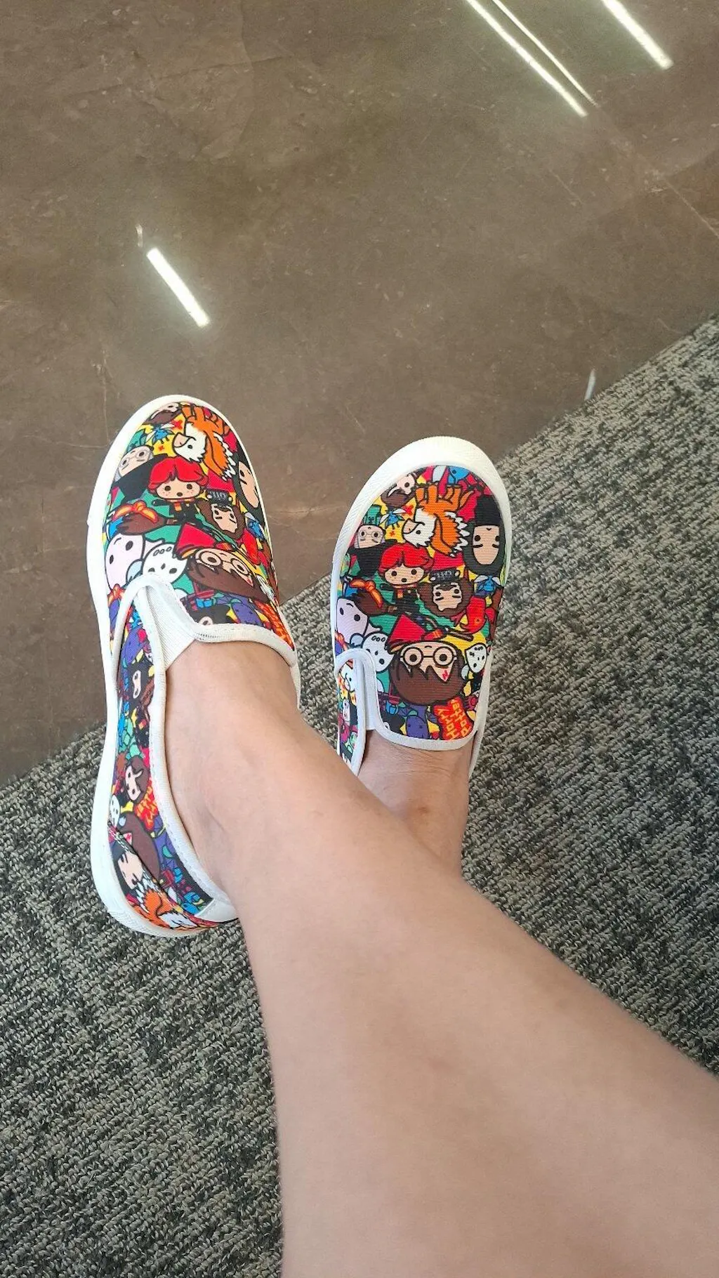 These Potterland Printed Canvas Slip‑Ons are made for the witch (or wizard) in you — the one whose heart still races for Platform 9¾, midnight feasts, and the crackling magic of Hogwarts. Illustrated with quirky portraits of Harry, Hermione, Ron, Dumbledore, Snape, and Hedwig, it’s your feet’s personal Marauder’s Map: full of mischief, memories, and magic.